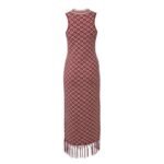 The Dodo Bar OR Chen Dress’ is meticulously crafted from geometric jacquard knit, featuring a close fit across the shoulders and neck, with fringed detailing at the bottom.