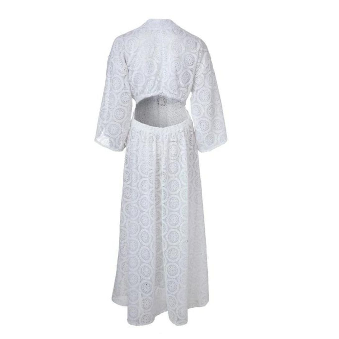 The Dodo Bar OR Cher Long Dress is crafted from 100% cotton and features a gathered ring-detailed cut-out that highlights the waist. The flared cropped sleeves add a relaxed vibe to the design.