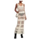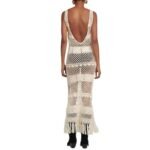 The Dodo Bar or Dmitry Dress is meticulously crocheted from lightweight cotton, featuring tasseled edges and a round open back.