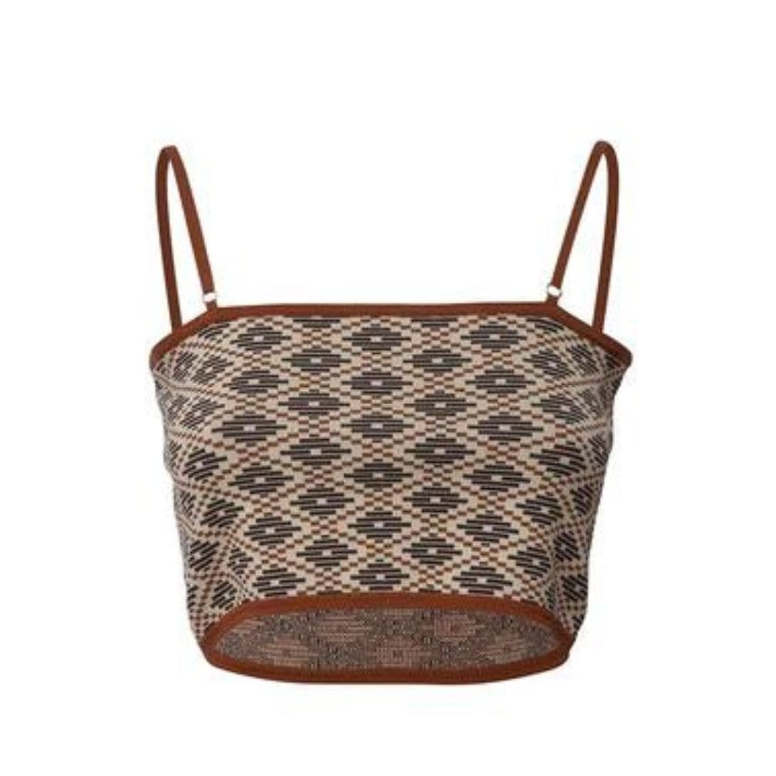 The Dodo Bar OR Eichi Top is crafted from a geometric jacquard knit, featuring slim straps and a cropped hem designed to showcase your collarbones.
