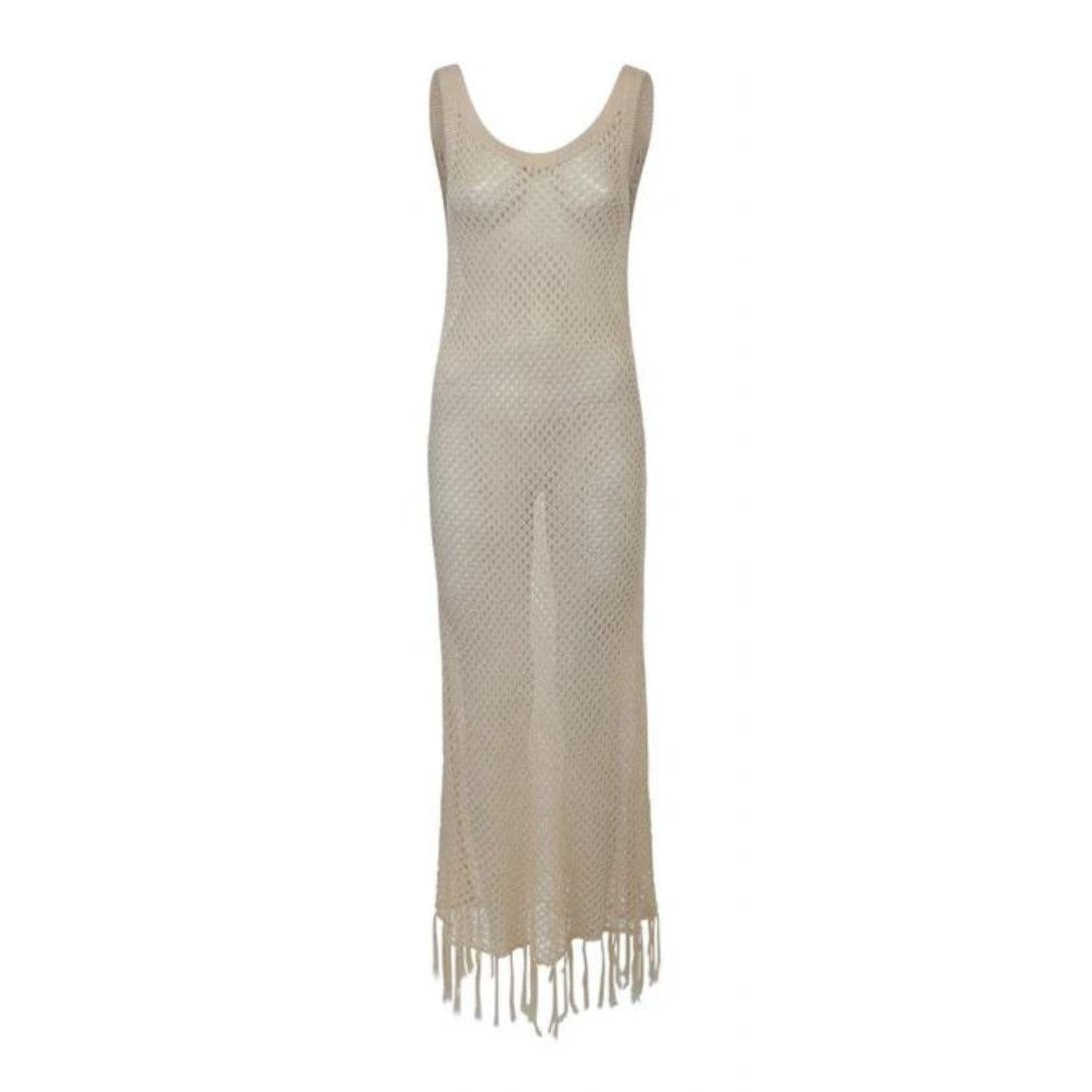 The Dodo Bar or Emma Dress is a sleeveless knit design adorned with fringed trims, offering a stylish and contemporary look.