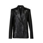 Dodo Bar or Gigi Jacket is constructed from 100% leather, designed with a boxy silhouette, and features peak lapels. It includes long sleeves, a concealed front fastening, a woven bodice and yoke, tasselled panels at the back, and a satin lining.