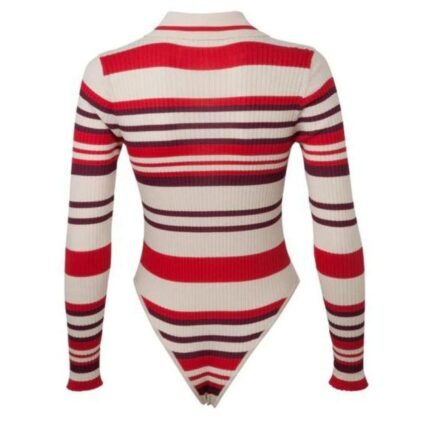 Crafted from ribbed viscose in a solid color, the dodo bar or Moinie Bodysuit features a statement collar and buttoning.