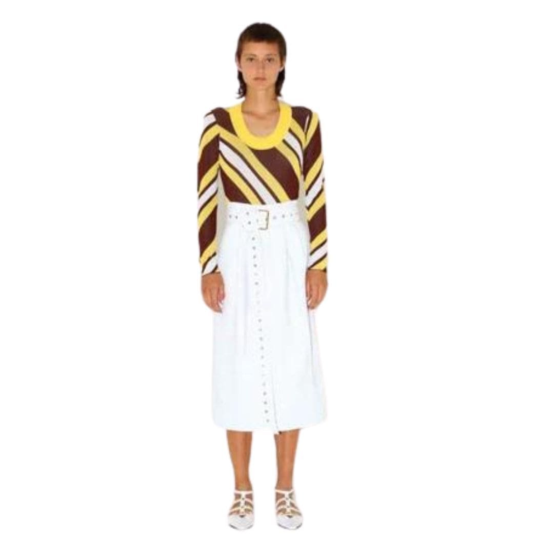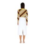 The dodo bar or Summer Bodysuit’ offers a snug fit with a stylish round neckline and a diagonal-striped pattern.