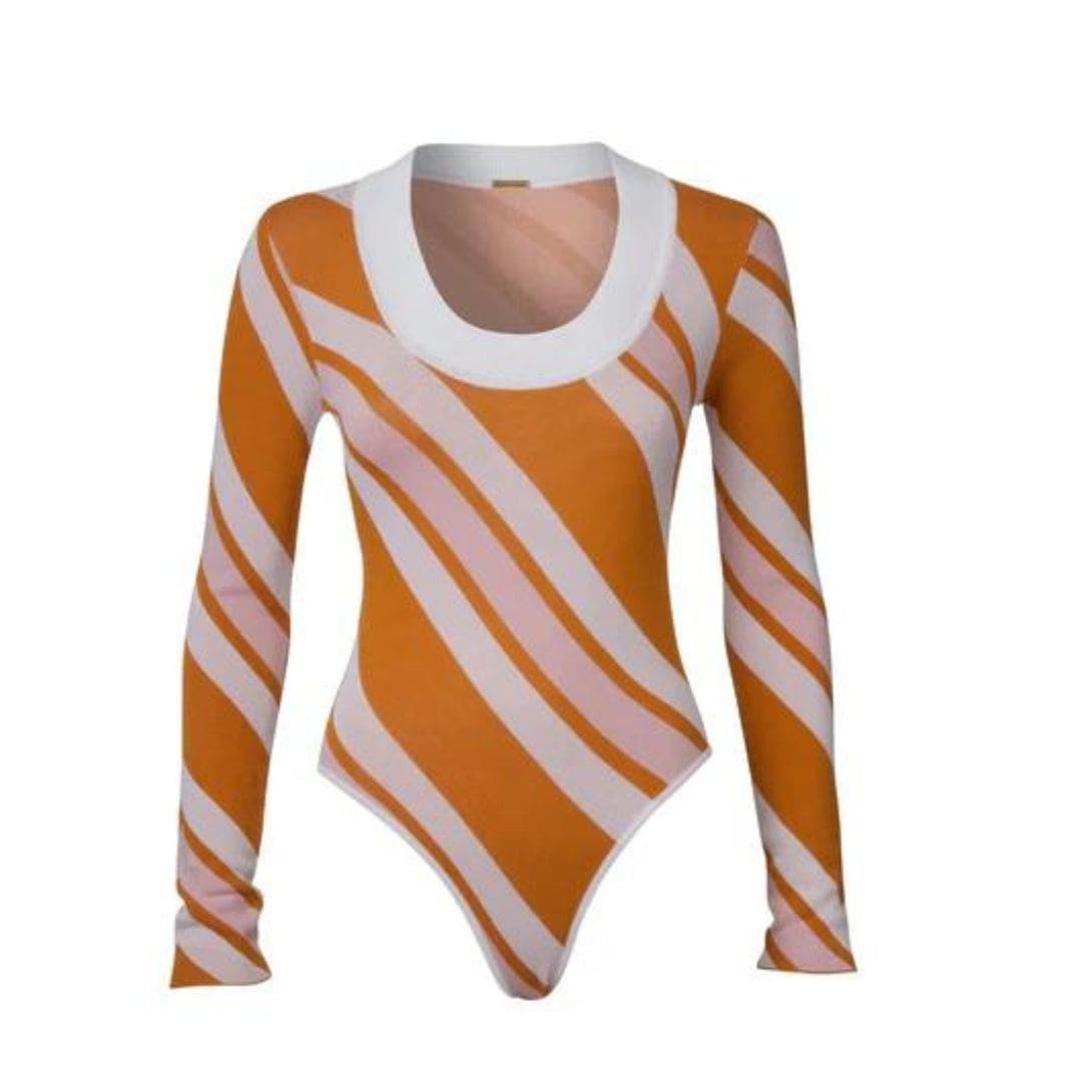 The dodo bar or Summer Bodysuit’ offers a snug fit with a stylish round neckline and a diagonal-striped pattern.