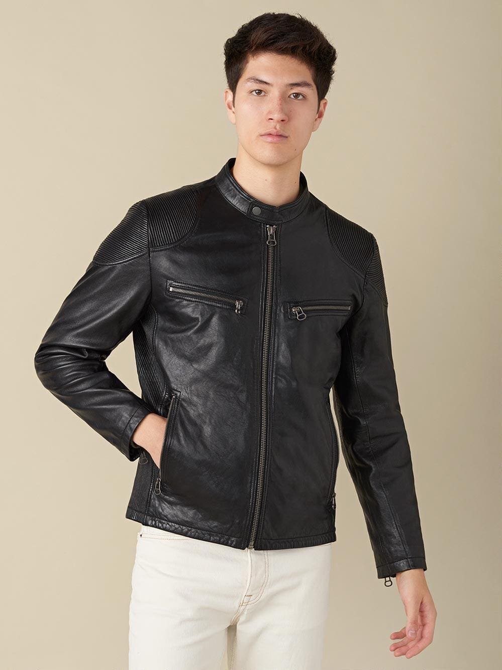 Racer with stretch leather inserts