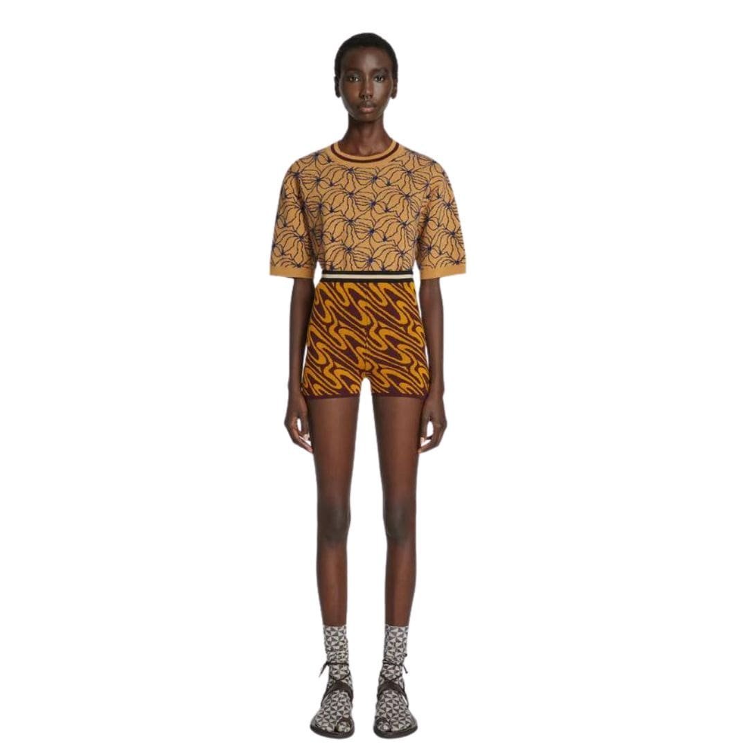 The Dries Van Noten Knitted Briefs feature a bicolour swirly jacquard motif that adds a touch of elegance and sophistication. The intricate pattern is a hallmark of Dries Van Noten’s attention to detail and commitment to high fashion. Additionally, the contrast rib borders provide a striking visual contrast while enhancing the fit and comfort of the briefs.