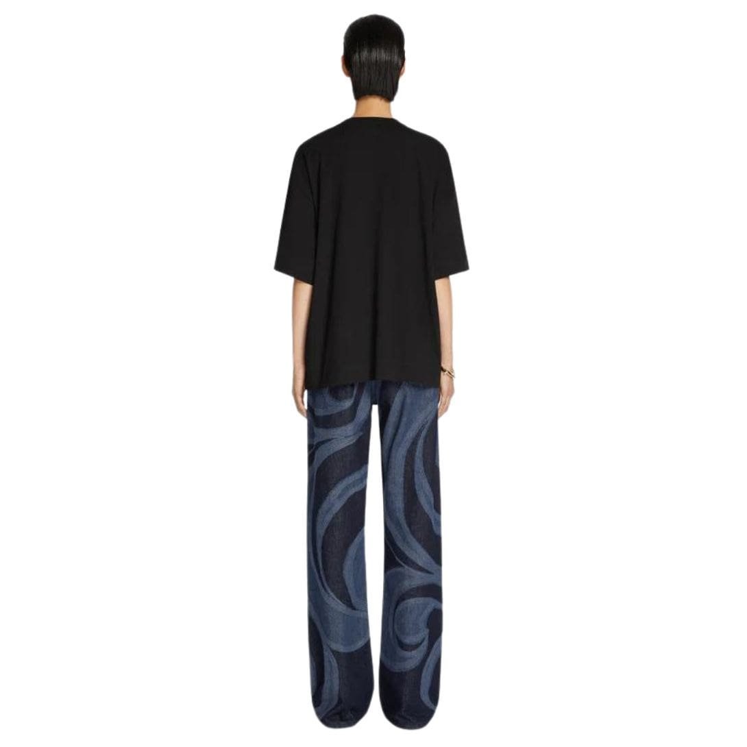 Dries Van Noten Loose Cotton Tee Black. is made from 100% lightweight cotton, offering a soft, breathable, and comfortable feel that’s perfect for everyday wear. This premium fabric ensures durability while providing a relaxed fit that feels gentle against the skin. The lightweight nature of the cotton makes it ideal for all seasons, keeping you cool in warmer weather and comfortable when layered in cooler temperatures.