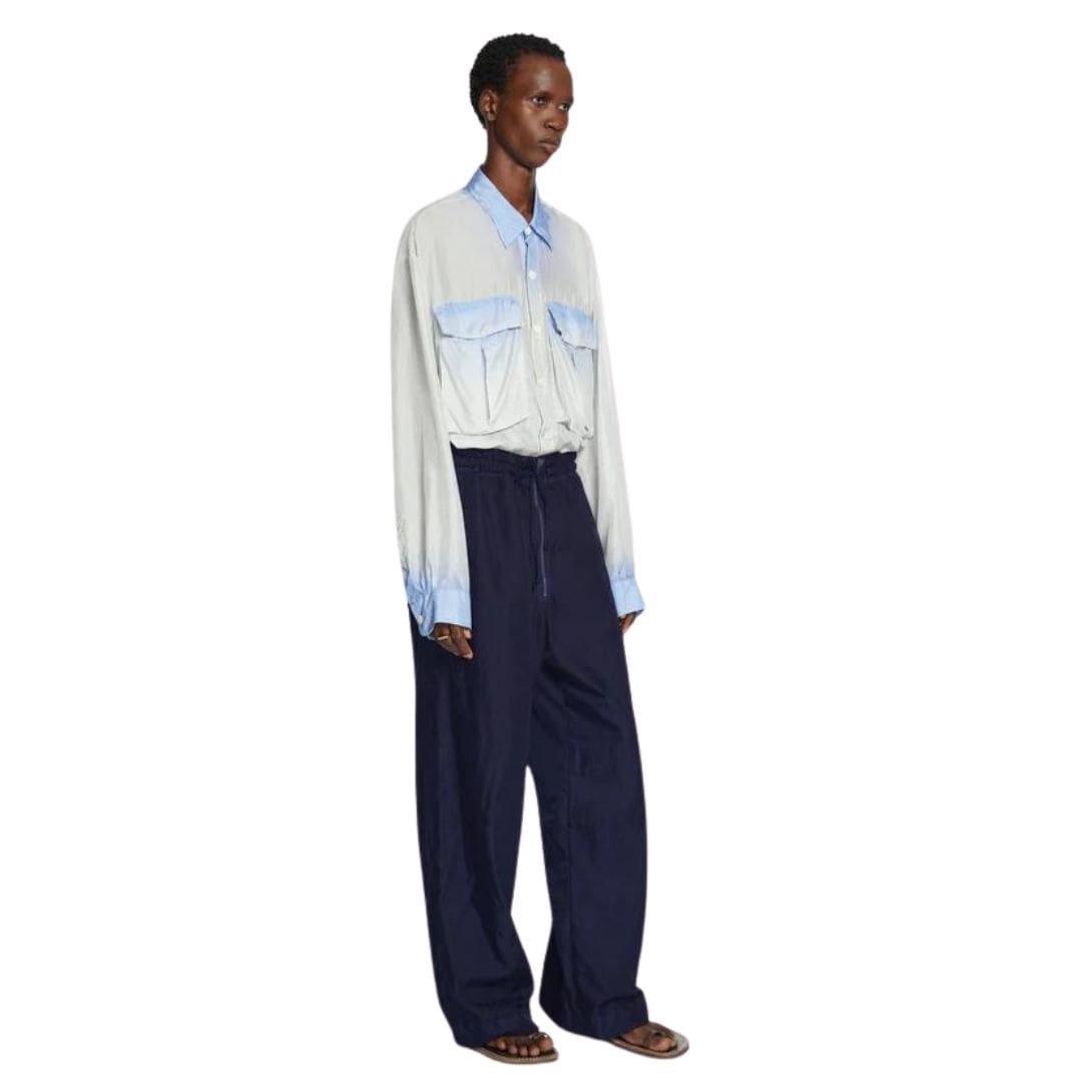 Introducing our DRIES VAN NOTEN Overdyed Pants, a fusion of classic style and contemporary flair. Crafted with meticulous attention to detail, these pants undergo a special dyeing process that results in a rich, saturated color with subtle variations for a unique, lived-in look. Made from high-quality materials, they offer both durability and comfort for everyday wear. The tailored silhouette ensures a polished appearance, while the overdyed finish adds a touch of sophistication to any outfit. Whether paired with a casual tee or a crisp button-down shirt, our Overdyed Pants are a versatile addition to your wardrobe, effortlessly elevating your style with understated elegance.