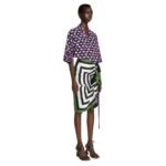 The geometrical print is the focal point of the shirt, showcasing intricate patterns and bold shapes that create a visually captivating effect. Whether featuring abstract designs, symmetrical arrangements, or playful motifs, each variation of the geometrical print enhances the shirt’s modern appeal and artistic sensibility. This distinctive pattern lends the garment a contemporary edge while maintaining a versatile quality that effortlessly transitions from day to evening wear.