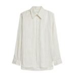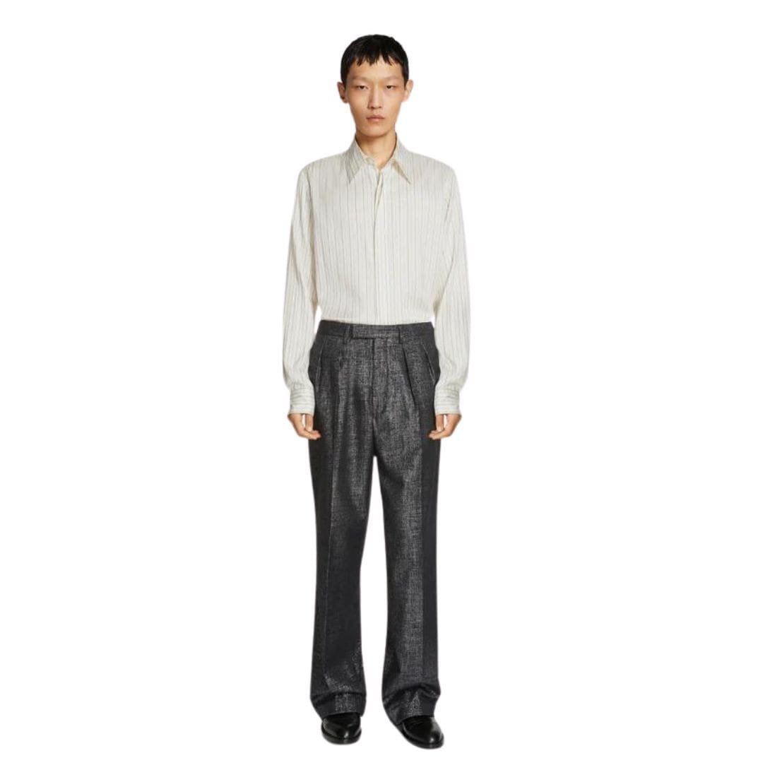 Unveil a touch of understated luxury with the Dries Van Noten Striped Silk Shirt, offers a luxurious take on a classic design. Crafted from premium silk, this shirt features a timeless striped pattern that adds sophistication to any outfit. Its tailored silhouette ensures a flattering fit, while the soft and smooth texture of the silk provides comfort throughout the day. With details like buttoned cuffs and a hidden front button closure, this shirt exudes elegance and refinement. Whether paired with dress pants for formal occasions or with jeans for a more relaxed look, the DRIES VAN NOTEN Striped Silk Shirt is a versatile wardrobe staple that effortlessly elevates your style.