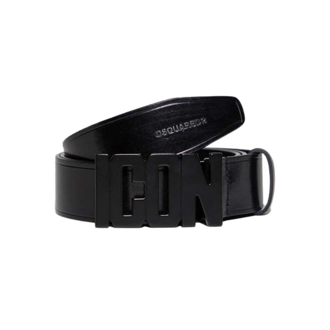 The plaque itself is a polished metal feature that prominently displays the “BE ICON” slogan, which is a nod to DSQUARED2’s reputation for edgy, fashion-forward aesthetics. The bold lettering is sleek and modern, making it a versatile accessory that can elevate a variety of outfits. Whether paired with casual denim or a more sophisticated ensemble, the belt adds a touch of high-fashion flair that stands out without overpowering.