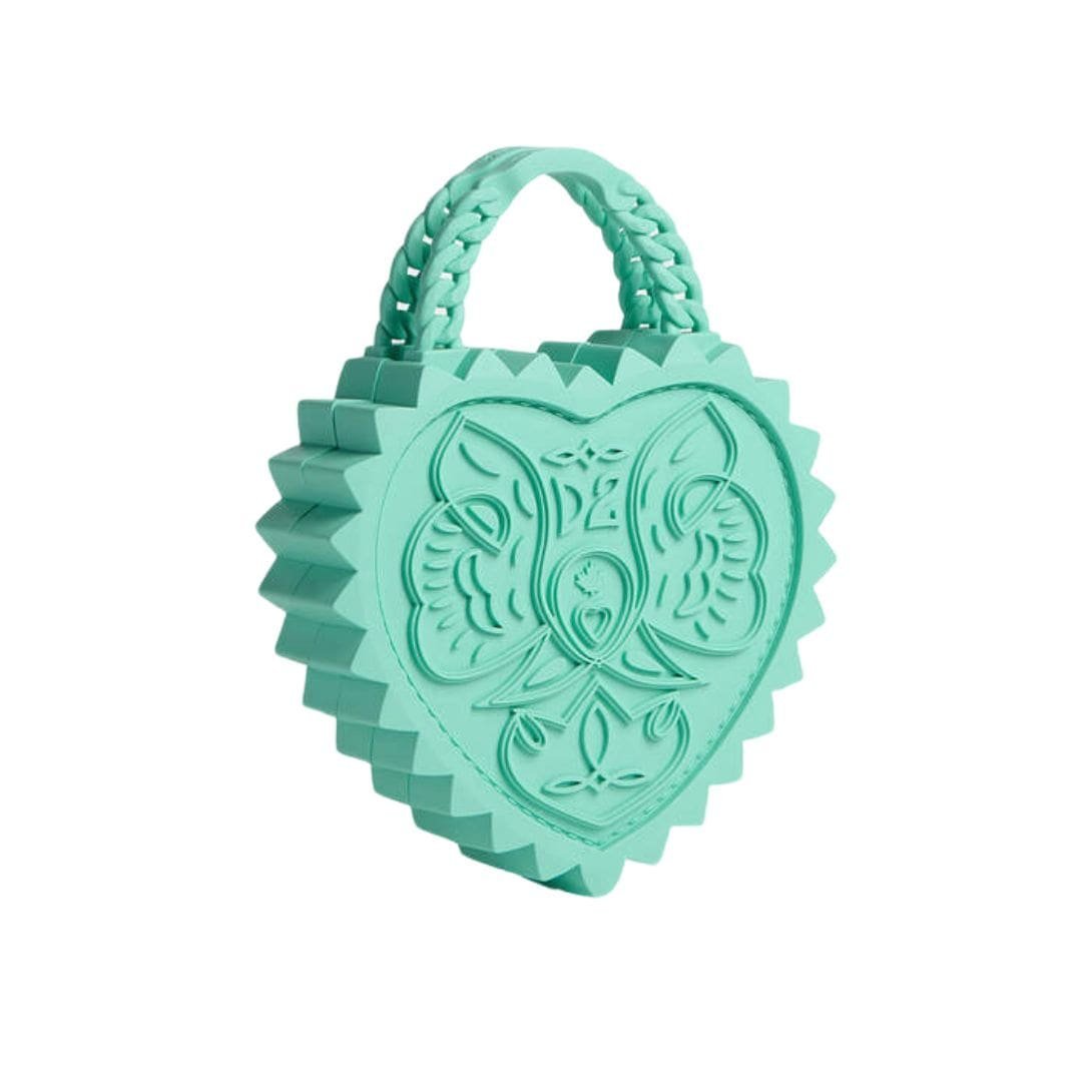 Inside, the Heart Bag offers enough space to carry essentials, making it both fashionable and functional. The interior is lined with a soft fabric, often in a contrasting color for an extra pop of style. It includes a small pocket for organizing smaller items like keys or cards, ensuring that everything has its place.