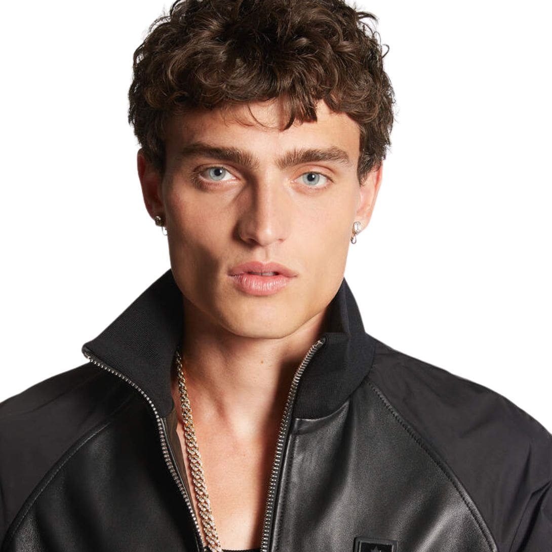 Overall, the DSQUARED2 Mixed Leather Bomber is a masterful blend of luxurious materials, innovative design, and meticulous craftsmanship. It is a statement piece that effortlessly elevates any outfit, embodying the daring and sophisticated spirit of DSQUARED2.