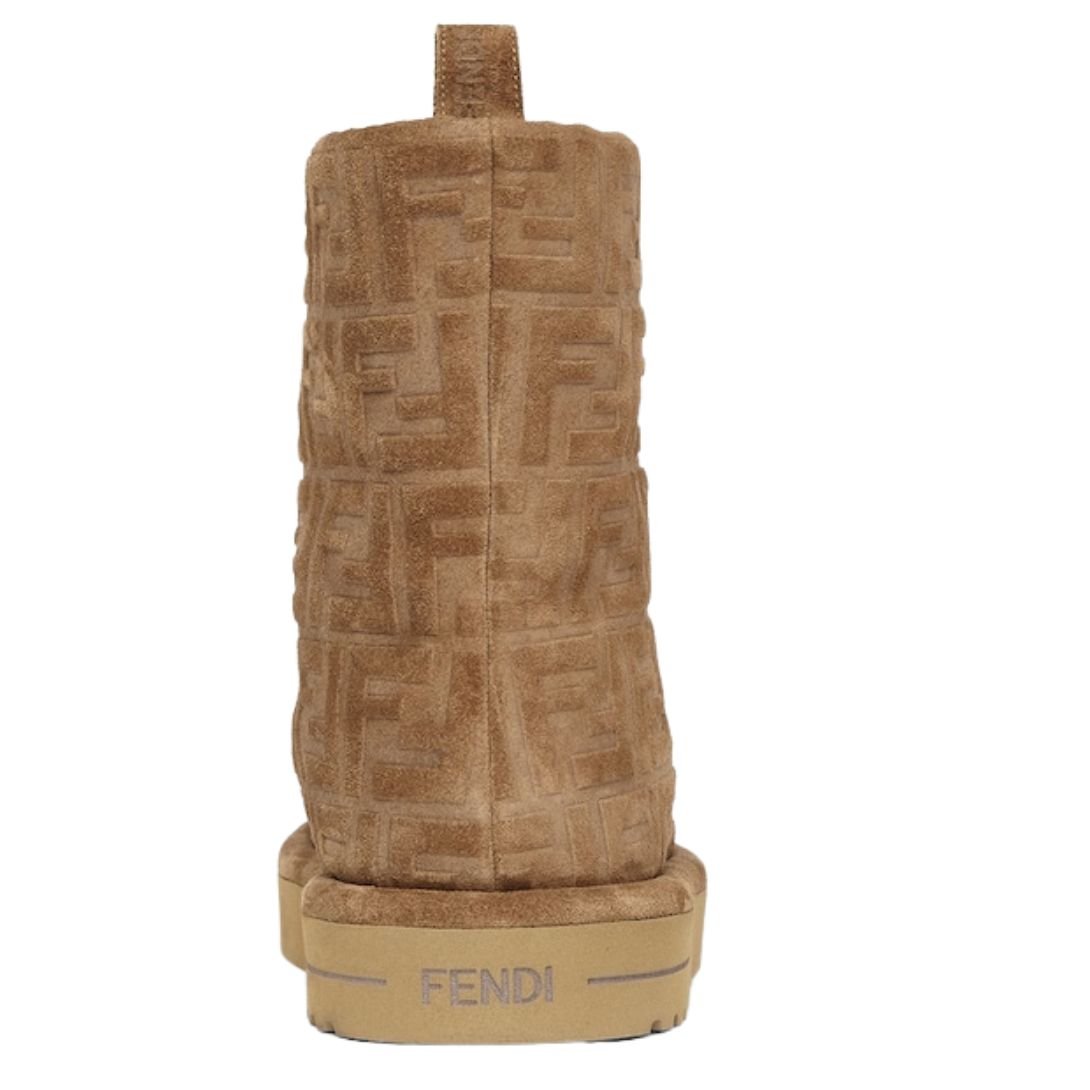 FENDI APRES CHIC BROWN FF CHAMOIS LOW BOOTS
