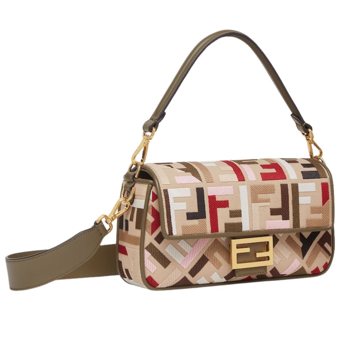 With its beige canvas, multicolor FF motif, and the classic FF clasp, this Medium Baguette Bag is both a versatile and iconic addition to any collec