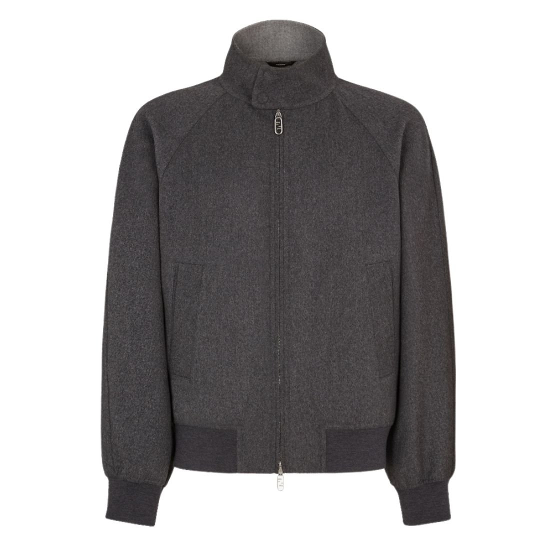 FENDI BLOUSON GRAY CASHMERE BOMBER JACKET