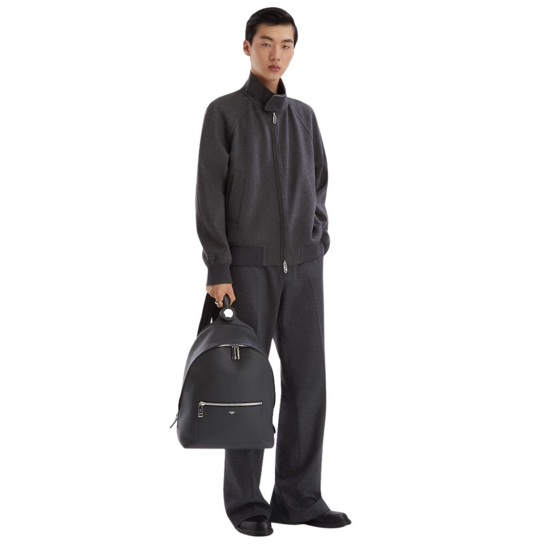 Made from 98% cashmere and 2% elastane, this lightweight blouson offers exceptional softness and comfort. The embossed FF patch, embroidered in a matching tone on the back of the collar, adds a distinctive touch, while the palladium-finish metalware enhances the overall luxurious feel.