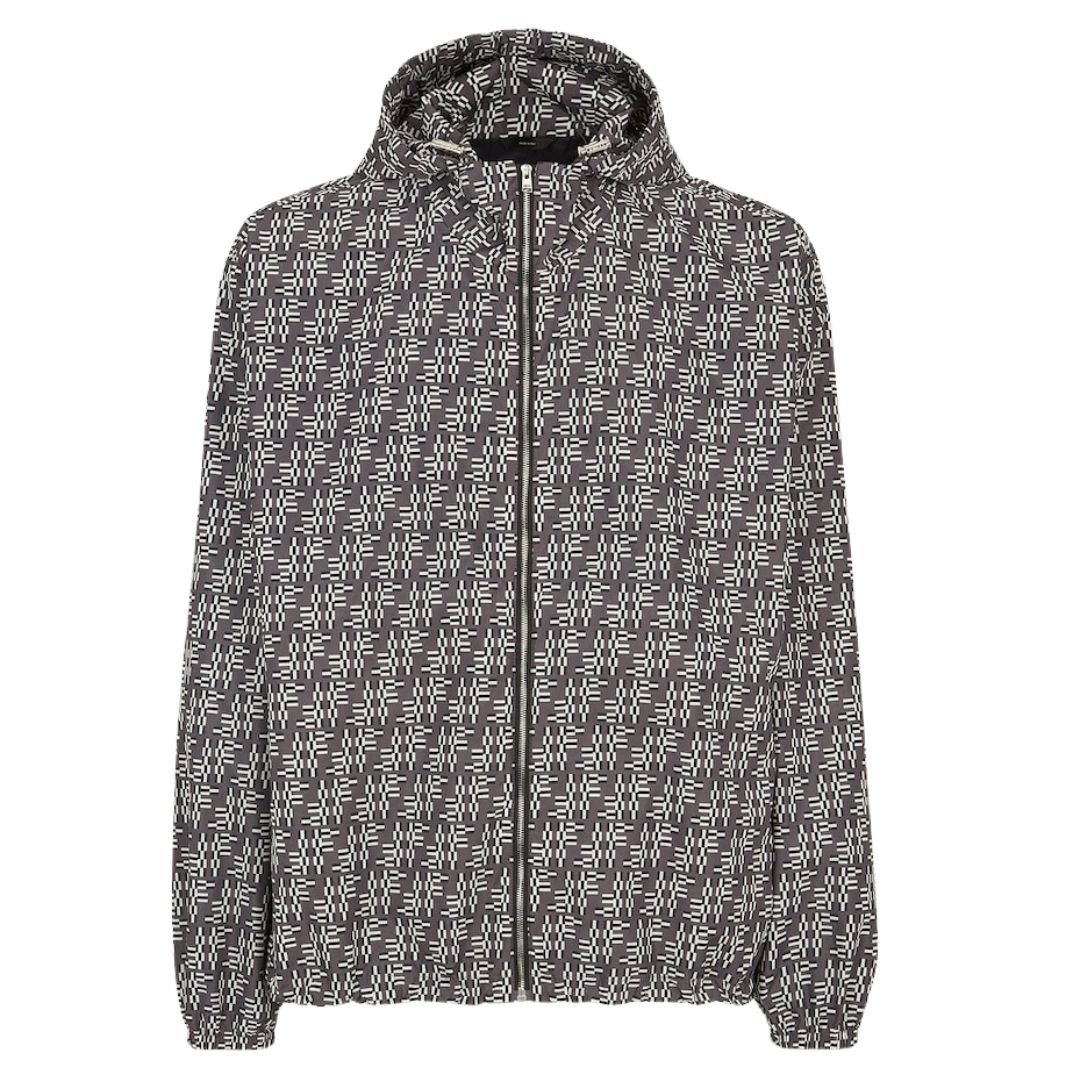 FENDI BLOUSON GRAY FF LABYRINTH NYLON WINDBREAKER JACKET