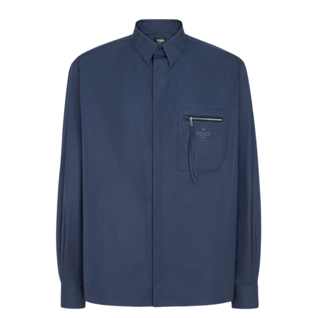 Made from high-quality blue cotton, this shirt is both comfortable and durable. The flap of the left pocket is adorned with a contrasting Fendi Roma logo, adding a bold and distinctive touch.