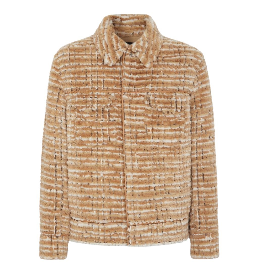 Distinguished by intricate loom craftsmanship, the jacket showcases a raised, soft-textured FF motif across its surface. This exquisite detailing adds a unique touch of luxury, enhancing the overall look with a timeless appeal.