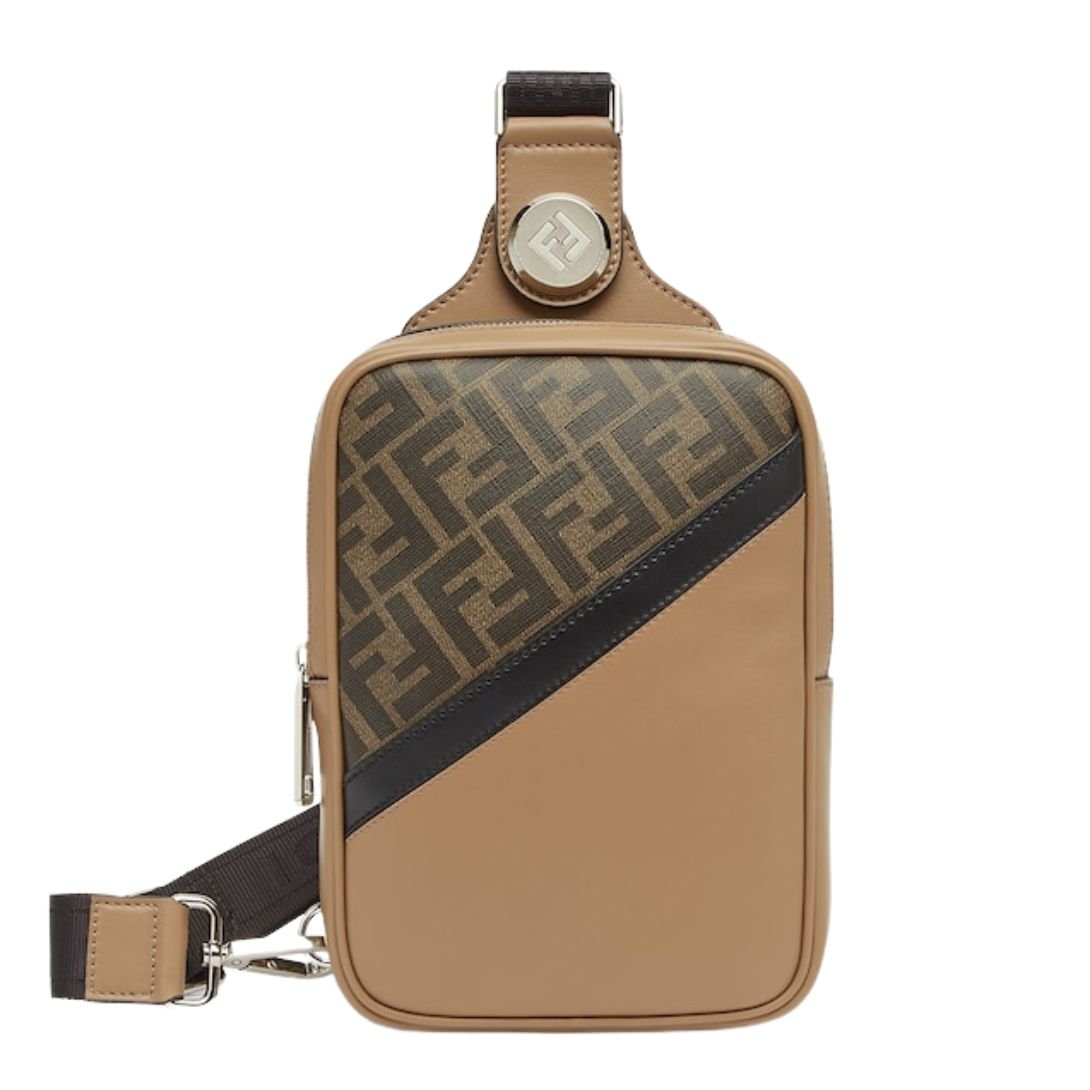 FENDI DIAGONAL BELT BAG BROWN FF CANVAS BELT BAG