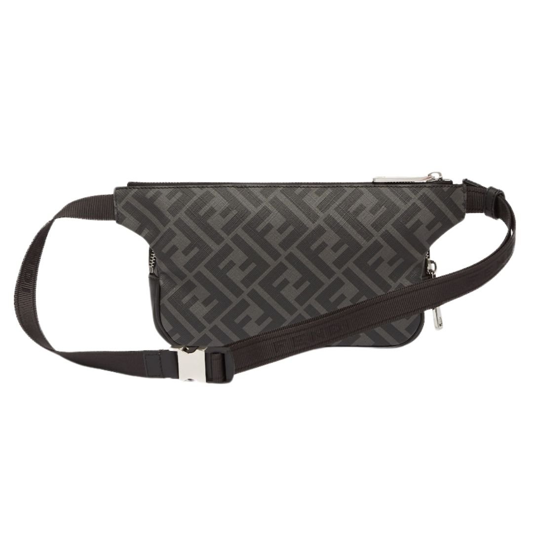 FENDI DIAGONAL BLACK FF FABRIC BELT BAG