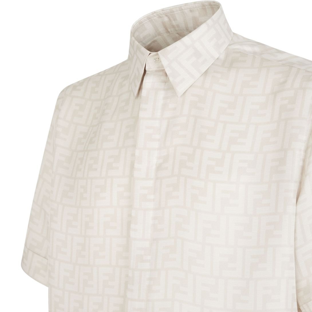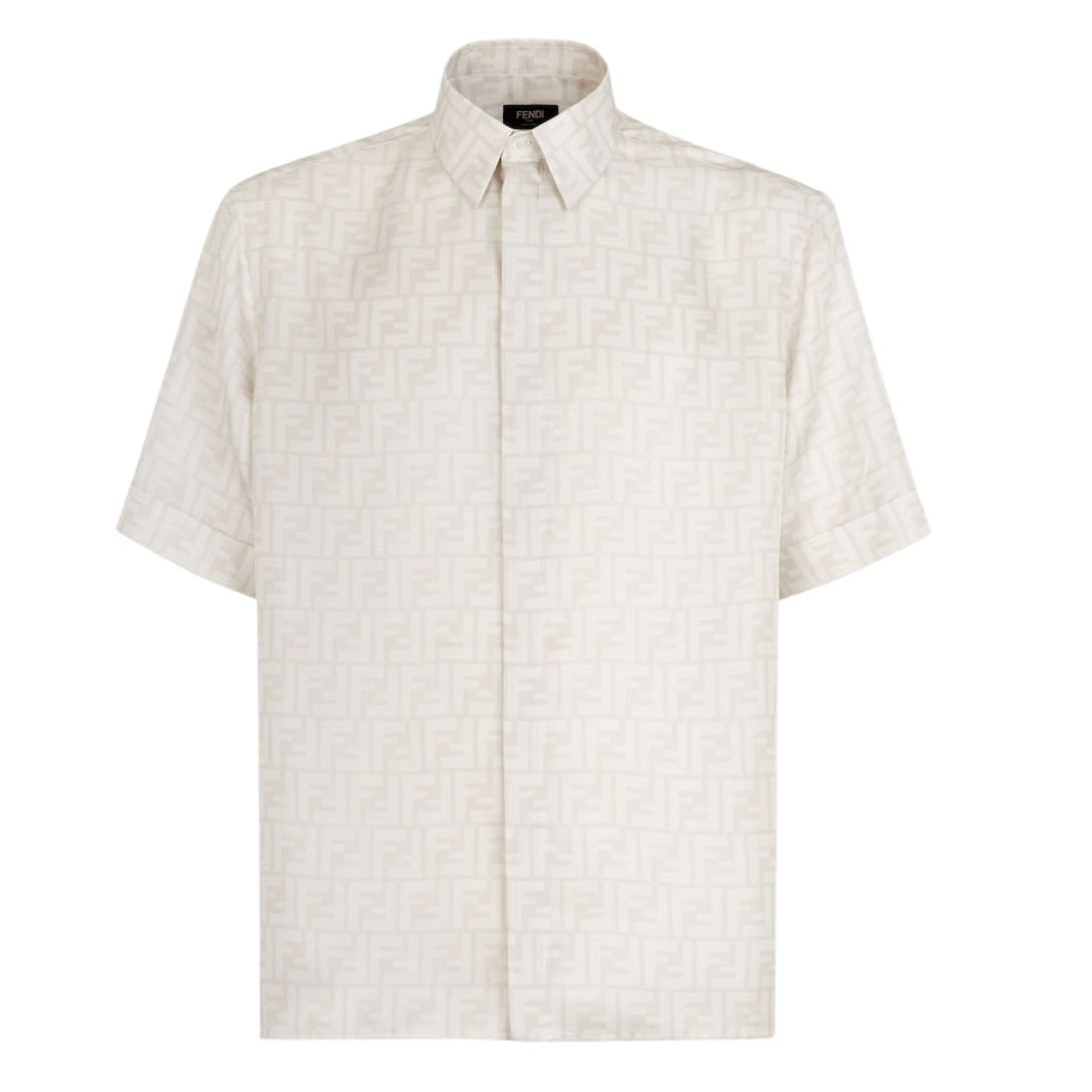 Made from white silk, this shirt is adorned with an all-over FF print, offering a sophisticated and luxurious touch. The silk fabric ensures comfort while maintaining a polished appearance.