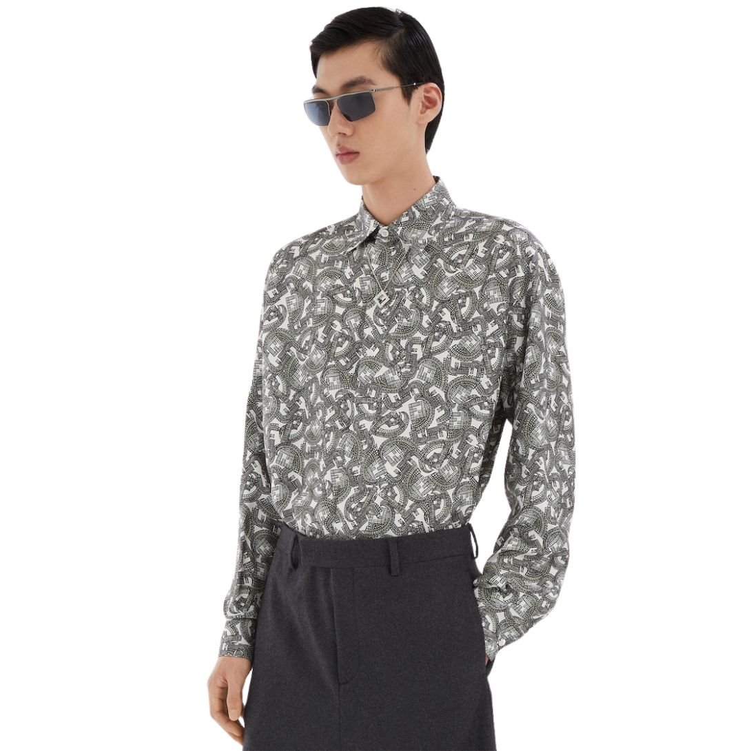 Crafted from silk, this shirt showcases the FF Jewels print in gray and white, adding an elegant and distinctive touch to the piece. The silk fabric provides a smooth, luxurious feel.
