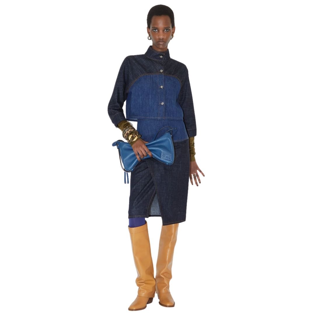 FENDI JEANS SKIRT BLUE TWO-TONE DENIM SKIRT