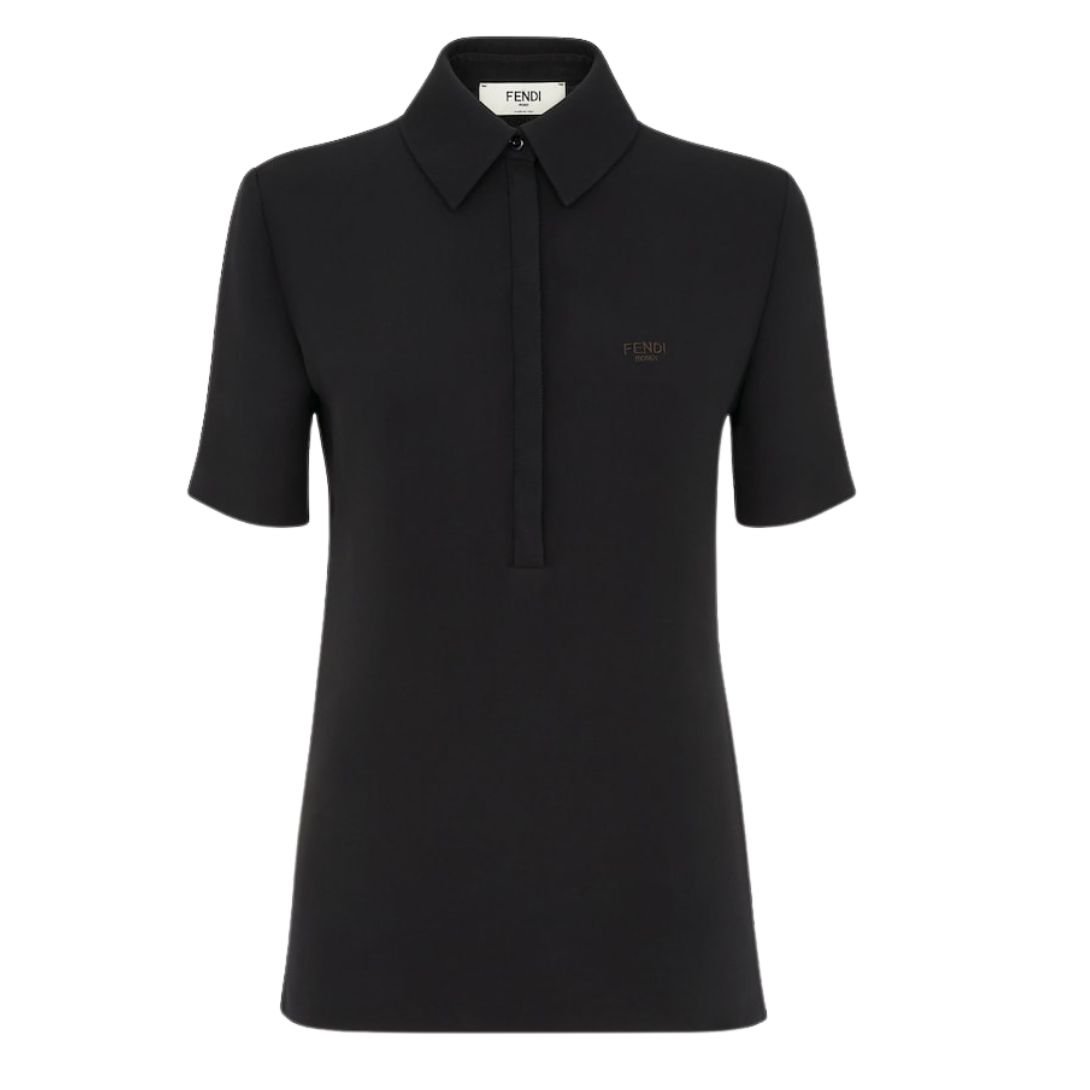 FENDI POLO SHIRT BLACK SILK CADY JERSEY