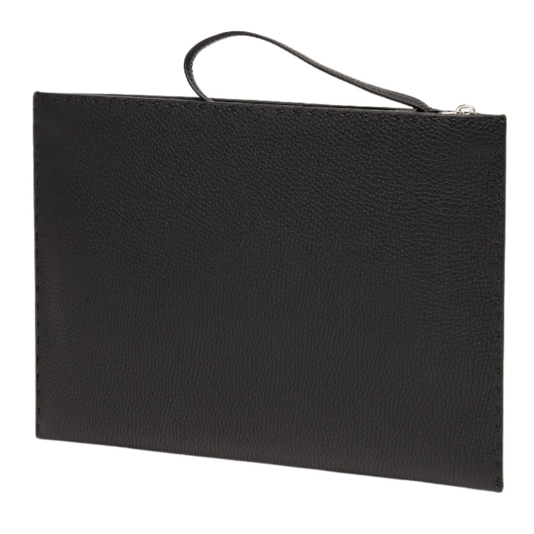 This elegant flat pouch showcases Fendi’s legacy of craftsmanship, combining the finest black Cuoio Romano leather with the distinctive Selleria hand-stitching technique, making it both a practical and stylish accessory.