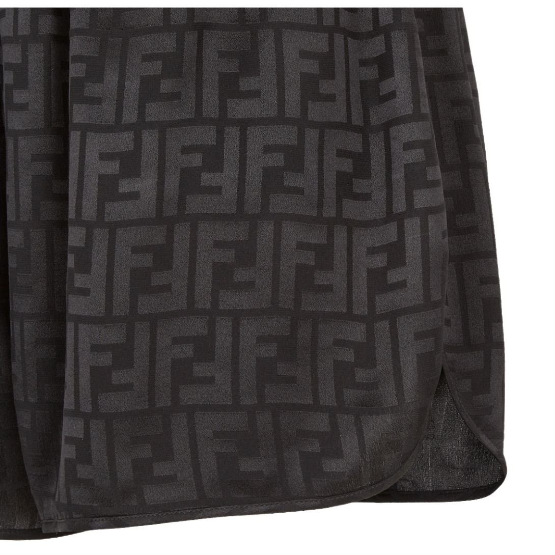 Black Silk Crêpe with Jacquard FF Motif