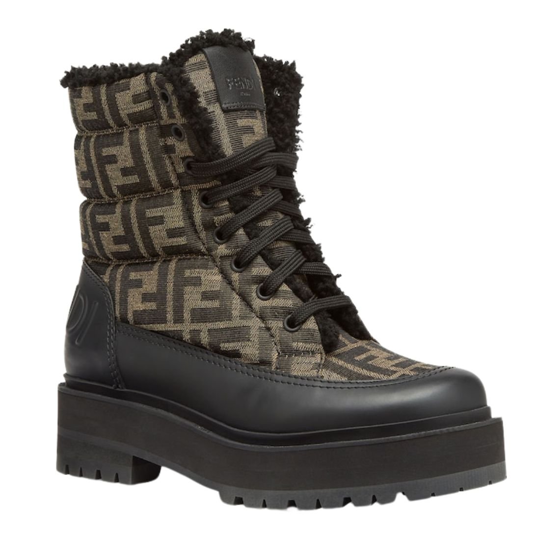 • Quilted fabric detailing adds texture and the iconic FF motif, making these boots a stylish statement.