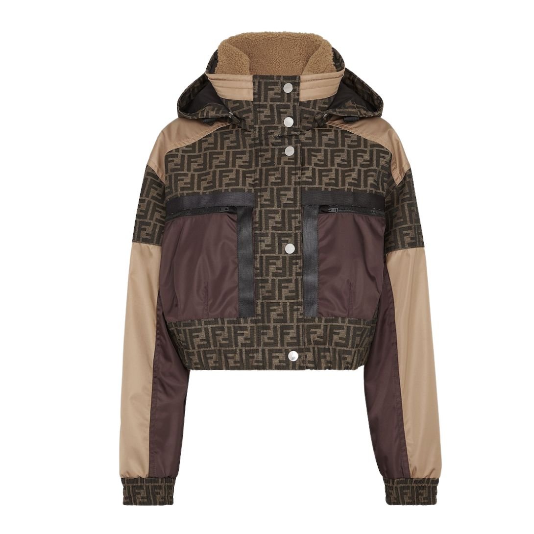 Elevate your ski wardrobe with this high-neck, cropped ski jacket featuring Fendi’s iconic FF motif in a bold yet functional design.
