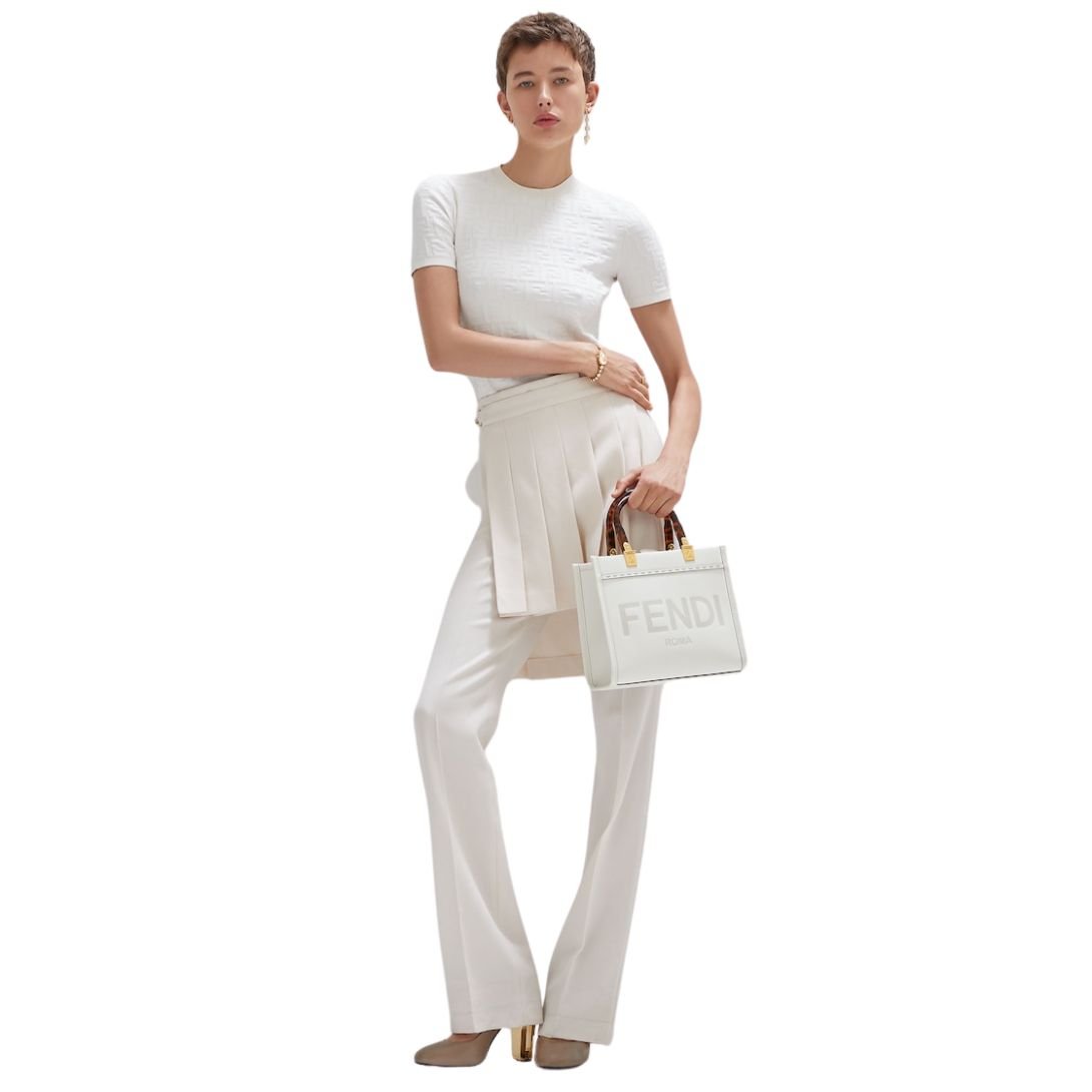 - All-Over FF Motif Intarsia: The tonal FF pattern adds texture and sophistication while maintaining a minimalistic charm.