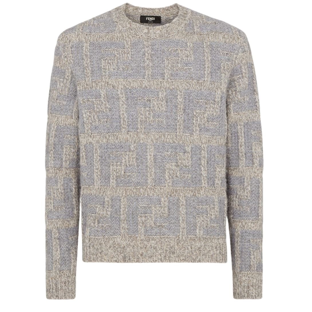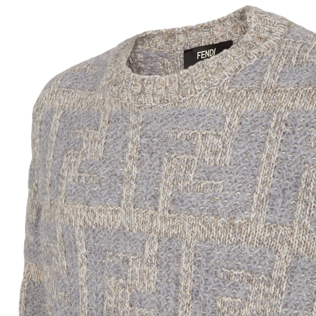 FENDI SWEATER GRAY ALPACA AND WOOL FF PULLOVER