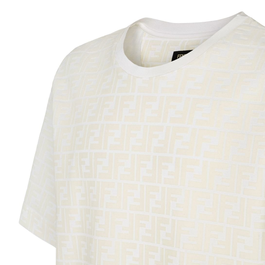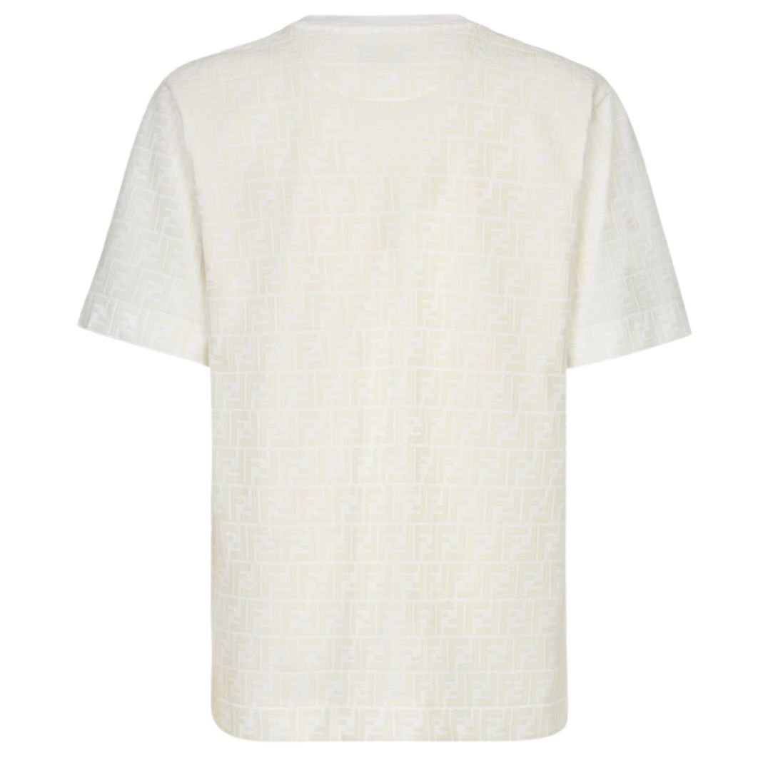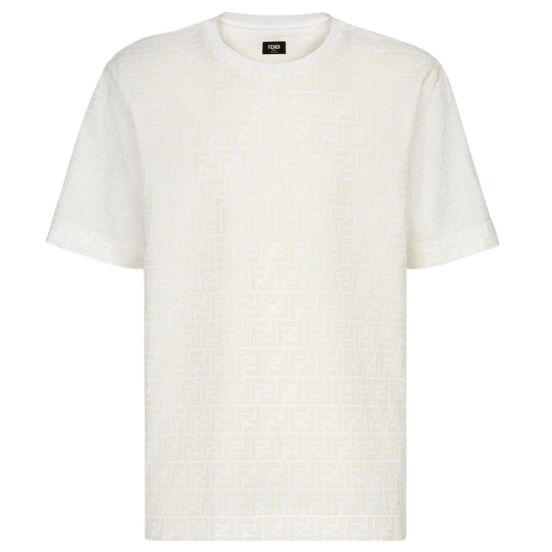 The T-shirt is decorated with a tone-on-tone flocked FF motif, printed all over the fabric. The subtle texture and pattern add depth to the design, creating a refined yet understated look. This decoration elevates the simple design of the T-shirt with a sophisticated and modern touch.