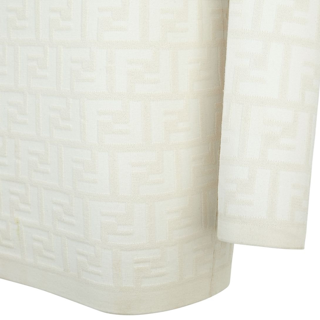 The raised FF motif in white adds a bold, eye-catching element to the dress. The classic round neck and long sleeves provide a timeless design, while the fitted shape contours the body for a streamlined, elegant look.