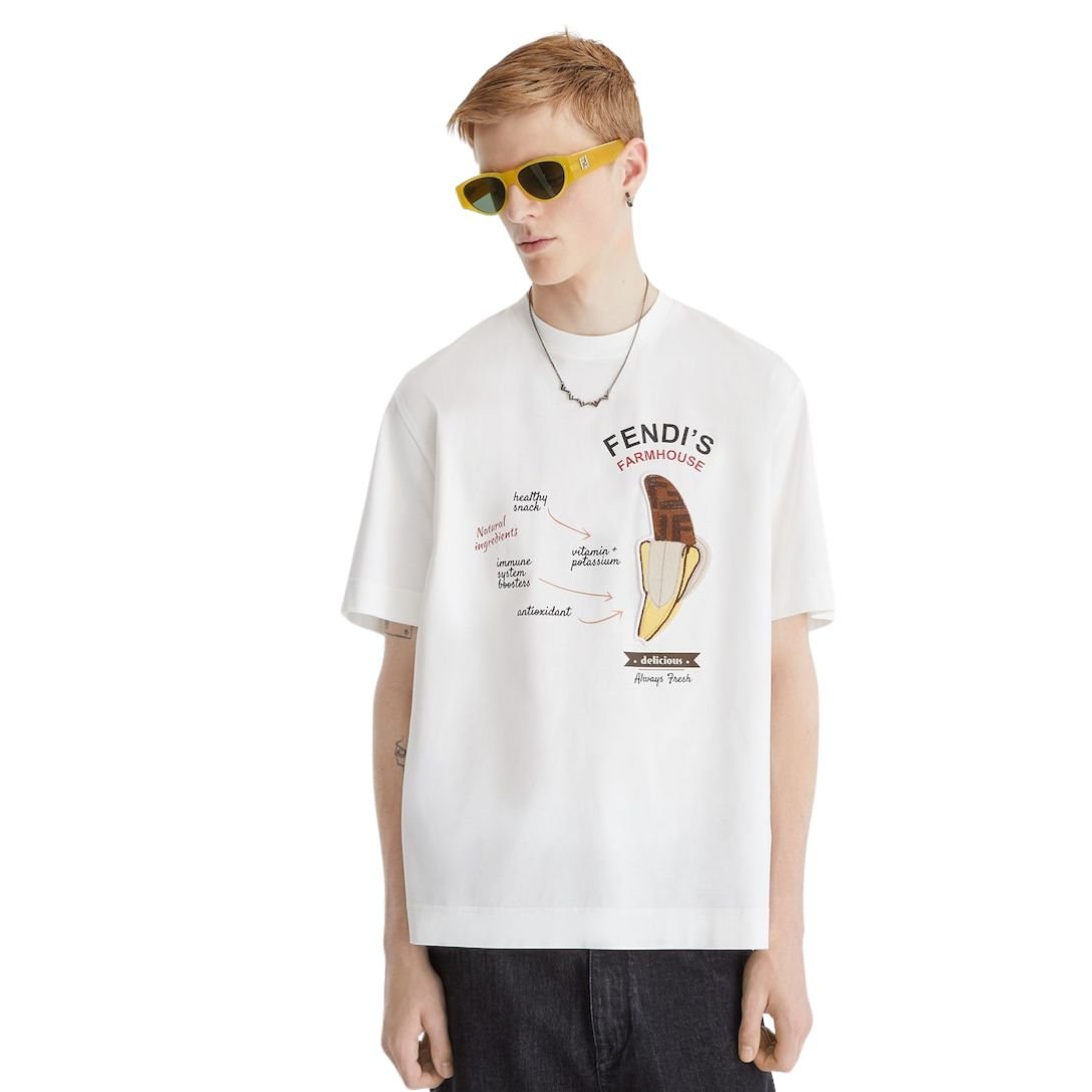 Pair this T-shirt with jeans, shorts, or casual trousers for a stylish, easygoing look. The Fendilicious motif and embroidered patch make it a standout piece, ideal for adding a touch of fun and individuality to your wardrobe. The oversized fit makes it perfect for layering with jackets or cardigans, while its minimalist style remains chic and modern.