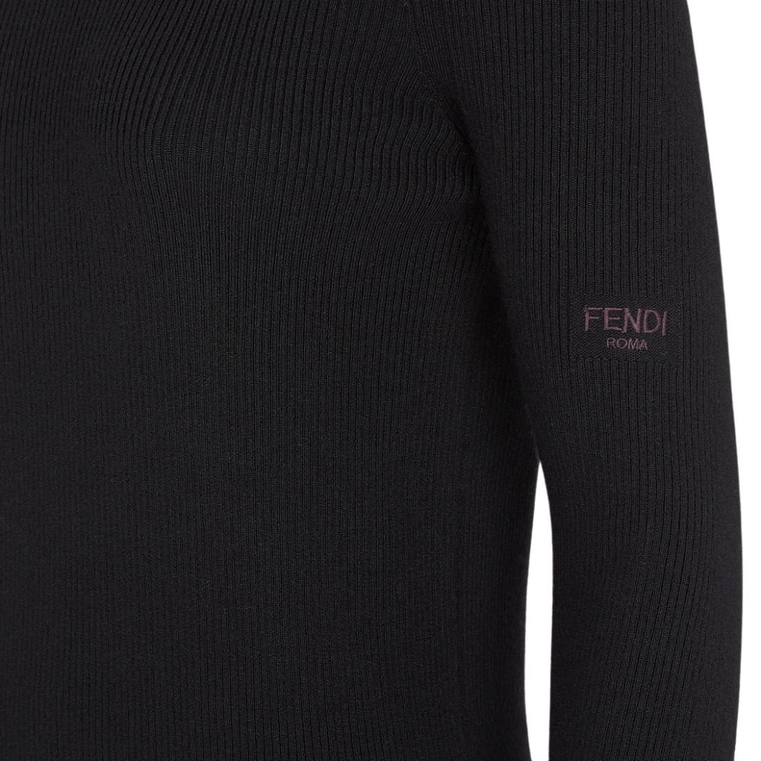 The dress is embellished with a contrasting embroidered Fendi Roma logo on the left-side sleeve, adding a signature touch to the minimalist design.
