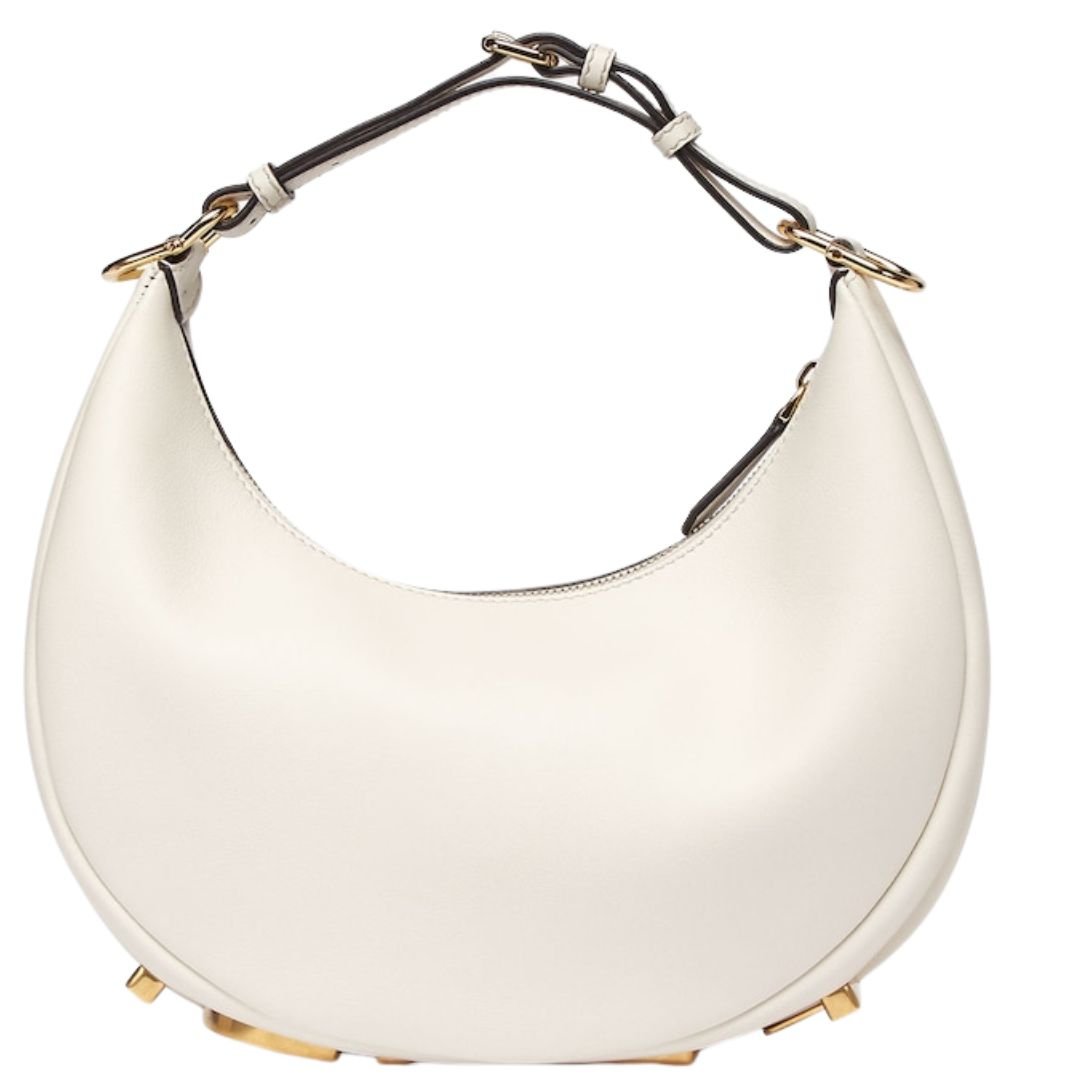 - Adorned with vintage gold metal FENDI lettering, prominently visible when worn under the arm, adding a bold yet refined statement.