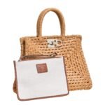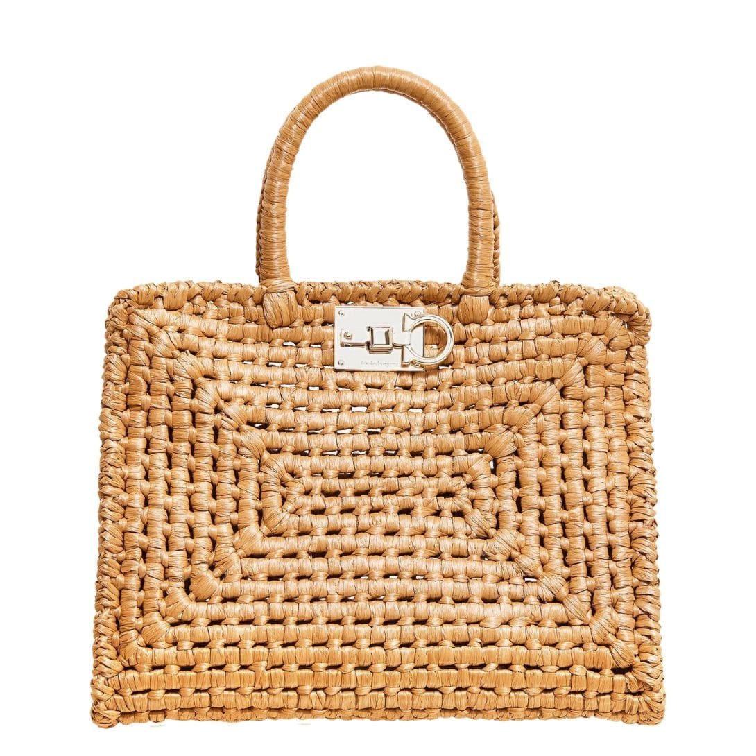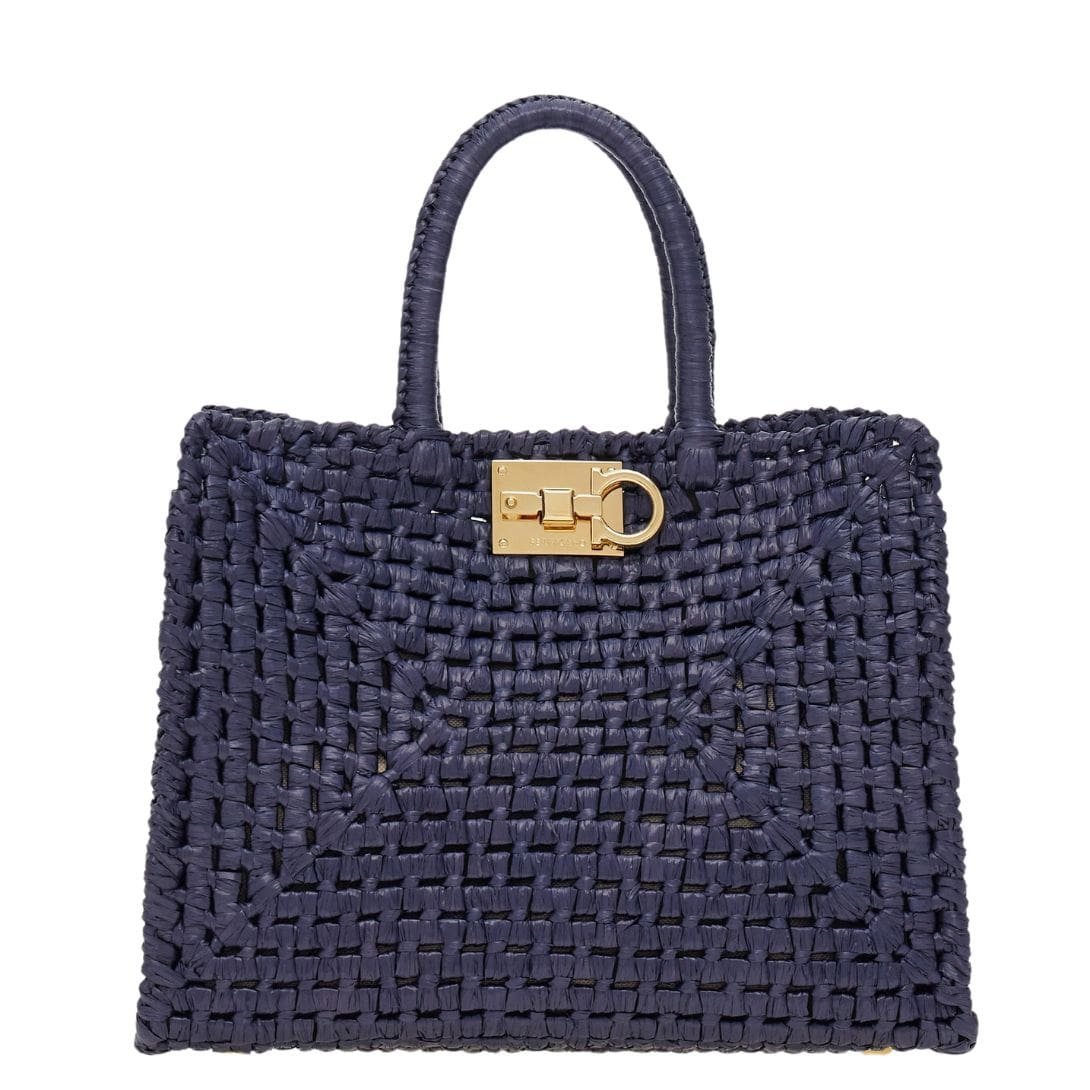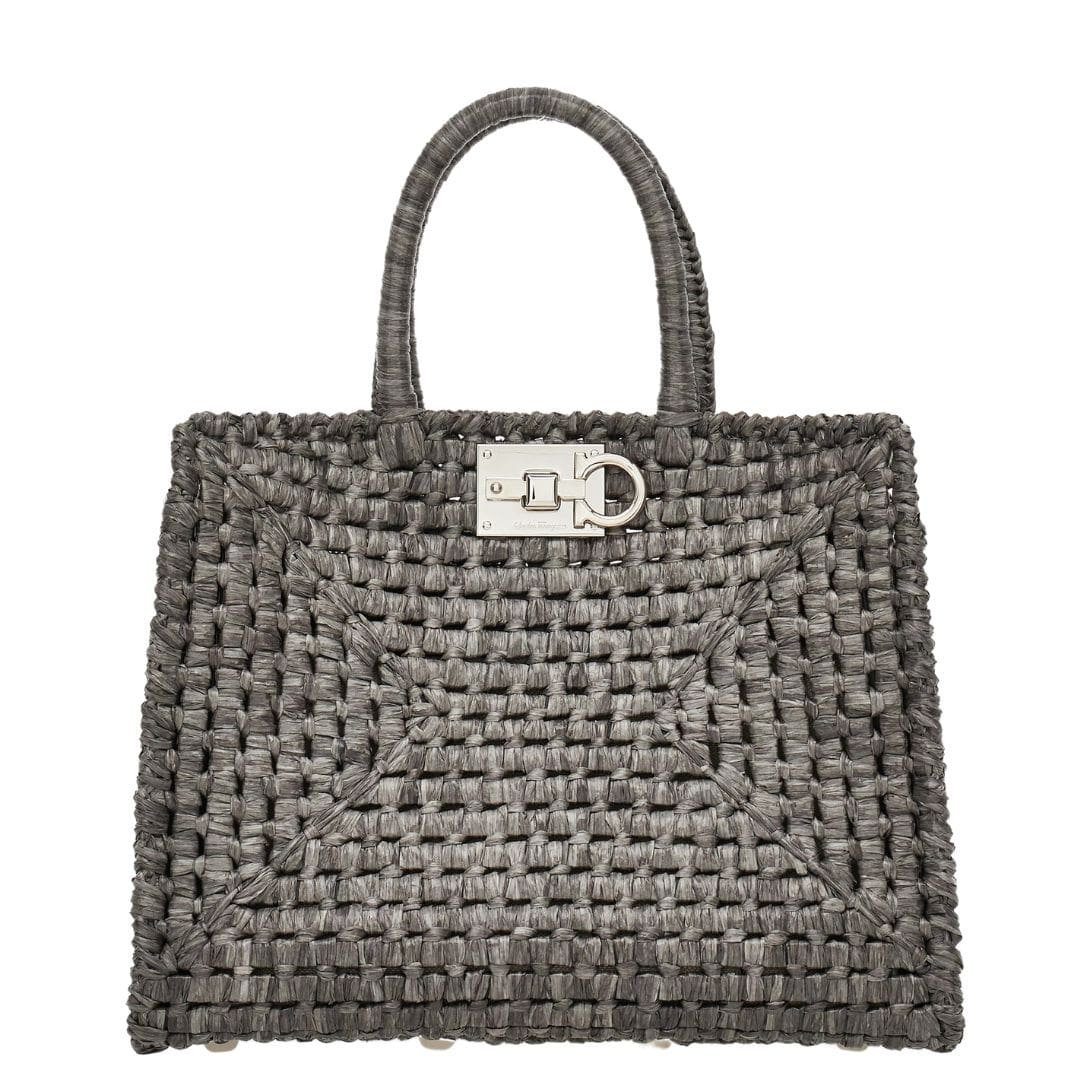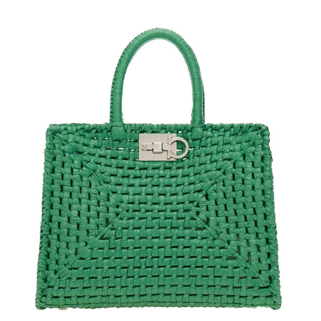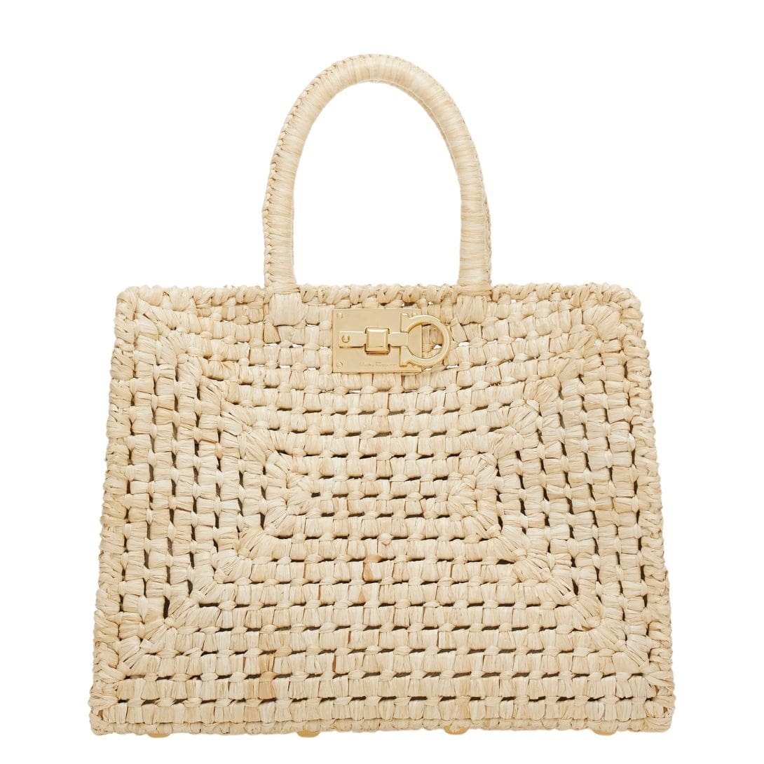 In summation, the Ferragamo Studio Box bag in its summery raffia incarnation is a celebration of both style and craftsmanship. With its handwoven structure, iconic details, and versatile functionality, it embodies the spirit of the season and promises to be a cherished companion for sun-soaked adventures and balmy evenings alike.