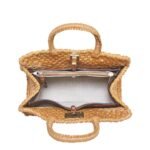 The colourful raffia exterior, reminiscent of sun-drenched landscapes and tropical hues, sets the stage for a journey into luxury and sophistication. Each strand of raffia is carefully selected and expertly woven by hand, creating a mesmerizing tapestry of texture and colour that captivates the senses.