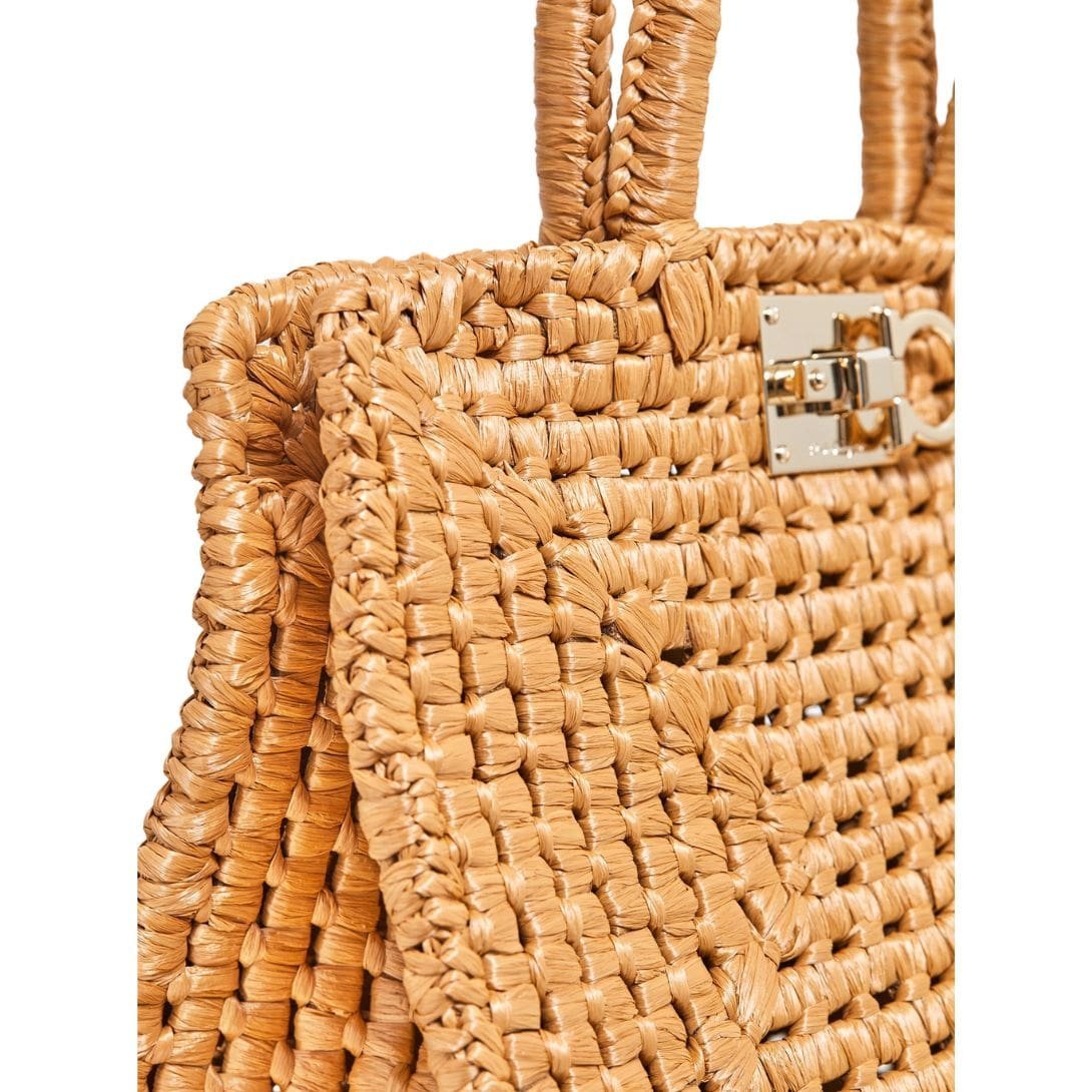 Experience the essence of summer embodied in our Ferragamo Studio Box bag (M), reimagined with a vibrant raffia structure meticulously handwoven to perfection. Drawing inspiration from its iconic predecessor, every detail of this seasonal rendition exudes a sense of timeless elegance and contemporary flair.
