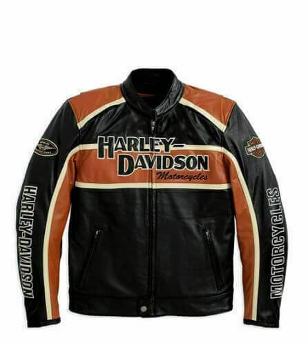 GENUINE MEN’S HARLEY DAVIDSON CLASSIC BLACK & ORANGE BIKER LEATHER JACKET