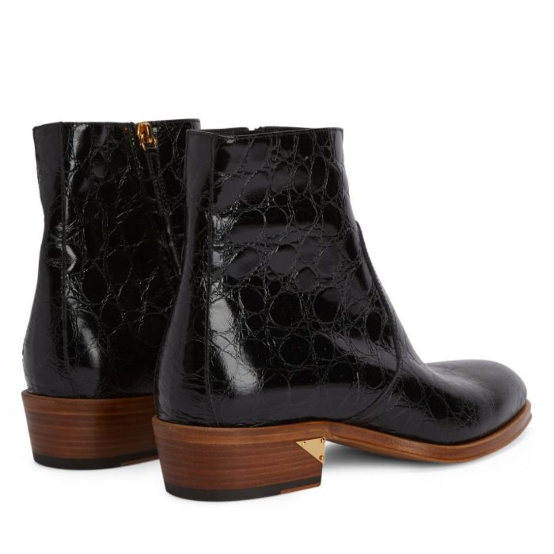 Indulge in Italian elegance with these crocodile-print leather ankle boots—an opulent fusion of style and sophistication.