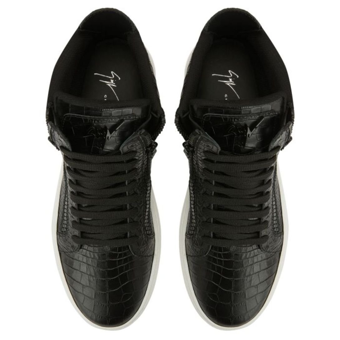These high-top sneakers offer a perfect blend of luxury, comfort, and contemporary style, making them ideal for dressing up or down. The intricate crocodile-print leather and functional design make them a standout piece in any wardrob