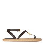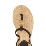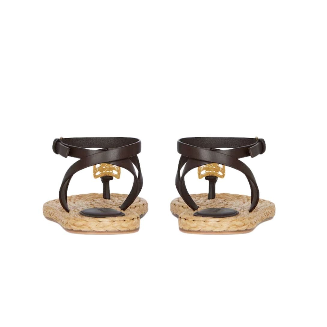 These sandals feature the iconic 4G emblem prominently displayed on the upper, a hallmark of the Givenchy brand. The emblem adds a touch of sophistication and brand recognition, ensuring that these sandals are not just another pair of summer footwear, but a statement piece. The 4G emblem is crafted in metallic tones, providing a striking contrast against the raffia’s organic hues.