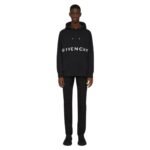 One of the standout details is the Givenchy 4G logo, prominently embossed on the chest. This iconic emblem is a testament to the brand’s heritage, adding a sophisticated edge to the otherwise understated piece. The logo is subtly integrated, maintaining the hoodie’s elegant simplicity while showcasing its luxury pedigree.